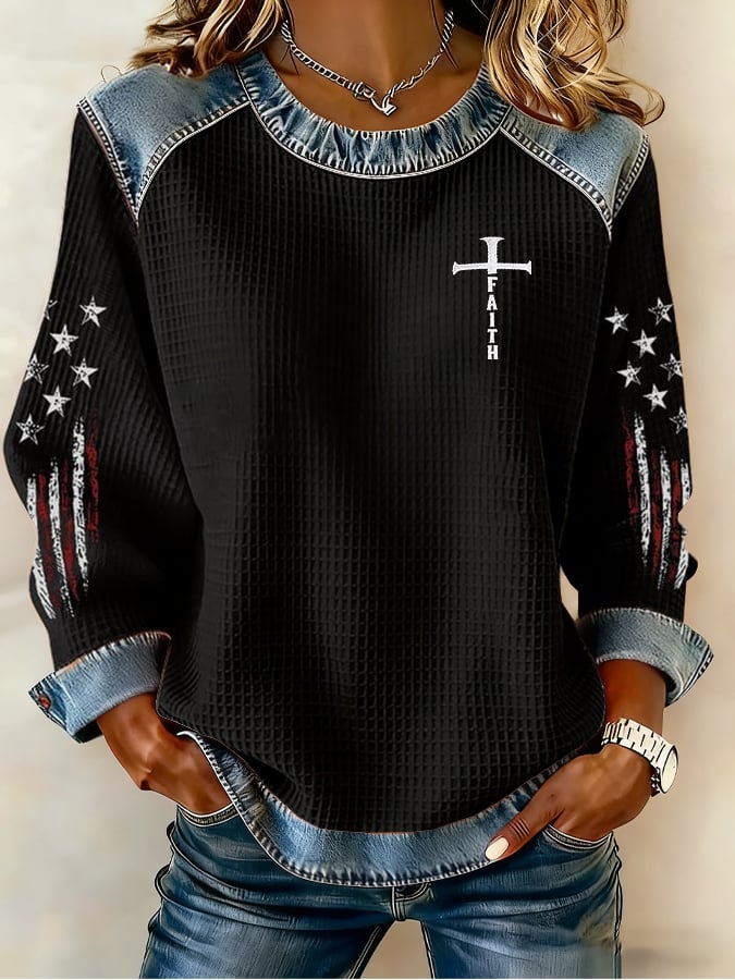 Women's Cross And Flag Print Sweatshirt