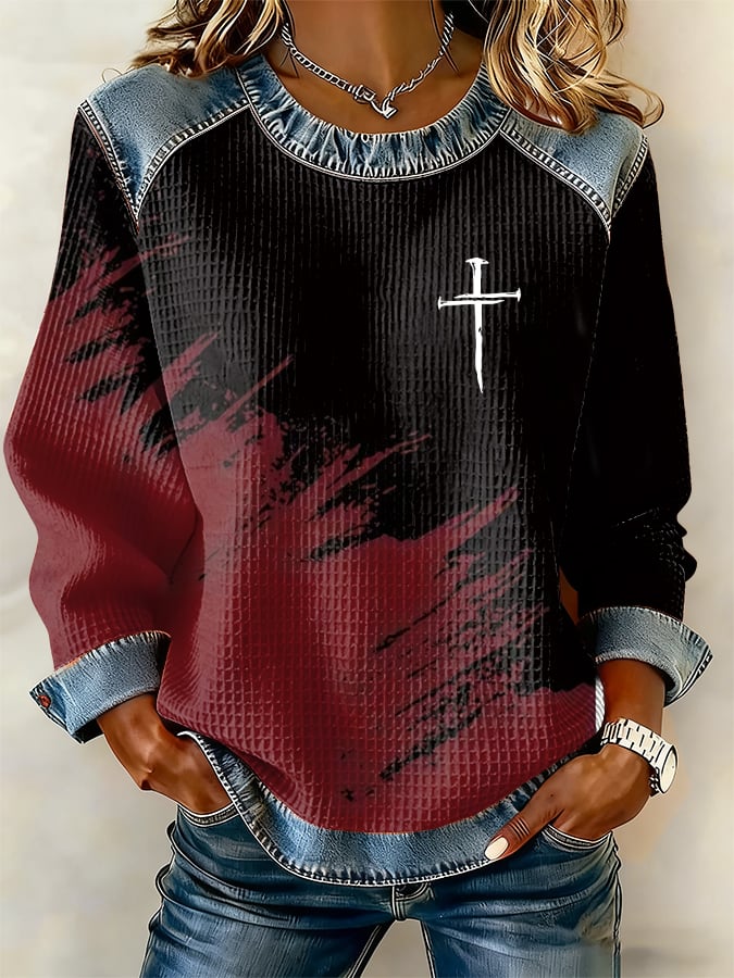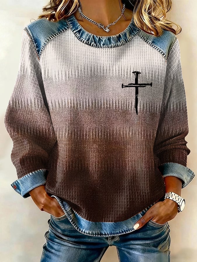 Women'S Casual Faith-Themed Gradient Print Sweatshirt