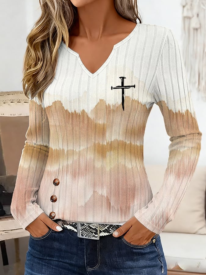 Women'S Faith-Inspired Cross Print Flannel V-Neck Top
