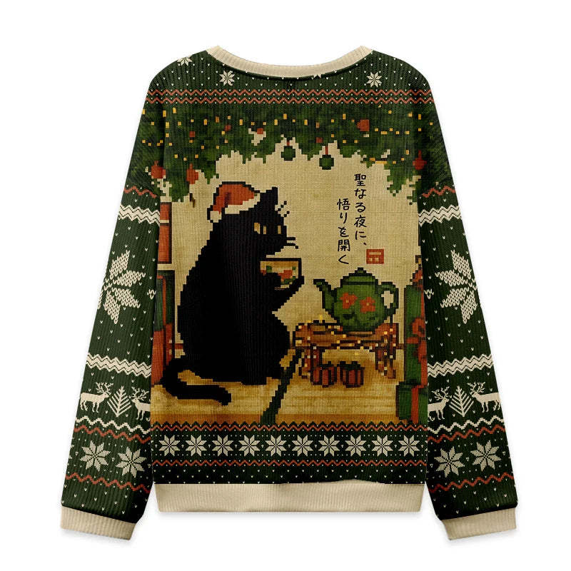 Tokyo-Tiger Cute Cat Drinking Tea Christmas Ugly Sweatshirt