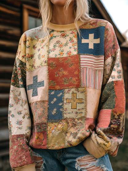 Women's Vintage Casual Floral Faith Print Sweatshirt